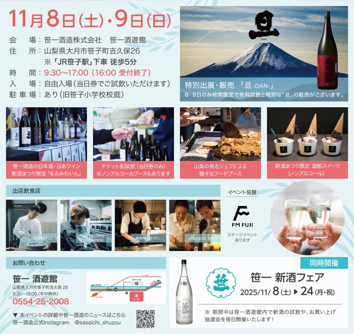 ¡öºû°ì¿·¼ò¤Þ¤Ä¤ê 2025¡ö 2025ǯ11·î8Æü(ÅÚ) ¡¢ 11·î9Æü(Æü)¤Î2Æü´Ö¡¢Éٻθæºä¤Î¿å¤ÈÂçÃϤηäò¸ʬ¤Ë³è¤«¤·¾ú¤¤·¤¿¡¢¤Ç¤¤¿¤Æ¤ÎÆüËܼò¤ÈÆüËܥ磻¥ó¤òÌ£¤ï¤¨¤ëÀ¤³¦¤ÇÍ£°ì¤Î²ò¶Ø¥¤¥Ù¥ó¥È¡¢¡Öºû°ì ¿·¼ò¤Þ¤Ä¤ê2025¡×¤ò³«ºÅÃפ·¤Þ¤¹¡ª ¢¥¤¥Ù¥ó¥È¾ÜºÙ¤Ï¤³¤Á¤é¤Îµ»ö¤è¤ê¤´Í÷¤¤¤¿¤À¤±¤Þ¤¹ https://prtimes.jp/main/html/rd/p/000000069.000100083.html »³Íü¡¢Éٻθæºä¤ÎÃÏ¤ÇÆüËܼò¤ÈÆüËܥ磻¥ó¤òÍ£°ì¾ú¤¤·¤Æ¤¤¤ëÆüËܼò¢¤Ç¤¢¤ëºû°ì¼ò¤¤Î¿·¼ò¤Þ¤Ä¤ê¤Ï¡¢º£Ç¯¾ú¤¤·¤¿ÆüËܼò¤Î¿·¼ò¤È¡¢¤Ç¤¤¿¤Æ¤Î»³Íü¥Ì¡¼¥Ü¡¼¤¬Î¾ÊýÌû¤·¤á¤ë¡¢Â¢¤Î°ìÂç¤Þ¤Ä¤ê¤Ç¤¹¡£ ¡¿·¼ò4¼ïÎà¡Üºû°ì¼ò¤¤¬¾ú¤¤¹¤ëÆüËܼò¤äÆüËܥ磻¥ó¡¢Á´21¼ïÎà¤ÎÃæ¤«¤é°û¤ßÈæ¤Ù¤¬¤Ç¤¤Þ¤¹¡ª¡Ê¥Î¥ó¥¢¥ë¥³¡¼¥ë¥Ö¡¼¥¹¤â¤¢¤ê¡Ë ¡ý¿·¼ò¡Öºû°ì ½é¤·¤Ü¤êÀ¸¡× ¡ý¿·¼ò¥ï¥¤¥ó¡ÖOLIFANT¹Ã½£2025¡×¡¦¡ÖOLIFANT¥Þ¥¹¥«¥Ã¥È¡¦¥Ù¡¼¥ê¡¼A2025¡×¡¦¡ÖOLIFANT¥Ç¥é¥¦¥§¥¢2025¡× ¢Âç¿Íµ¤¡Ö¤â¤í¤ß¥ï¥¤¥ó¡× ǯ¤Ë°ìÅ٤Ρֺû°ì¿·¼ò¤Þ¤Ä¤ê¡×¤Î²ñ¾ì¤Ç¤·¤«°û¤á¤Ê¤¤¡¢È¯¹ÚÅÓÃæ¤Î·Ú¤ä¤«¤Ê¤·¤å¤ï¤·¤å¤ï¡¢´Å¤¤¹á¤ê¤ÈÌ£¤ï¤¤¡¢¥¢¥ë¥³¡¼¥ëÅÙ¿ô2%¤Î¸ÂÄê¥ï¥¤¥ó¡Ö¤â¤í¤ß¤ï¤¤¤ó ¤¢¤«¡¦¤·¤í¡×¤Ï¡¢»î°û¥Á¥±¥Ã¥È¤Î¹ØÆþ¤Ç¤ª¹¥¤¤Ê¤À¤±¤ª¾¤¤·¾å¤¬¤ê¤¤¤¿¤À¤±¤Þ¤¹¡£ £¥é¥°¥¸¥å¥¢¥ê¡¼ÆüËܼò¥Ö¥é¥ó¥É¡Öö-DAN-¡×¤ÎÍÎÁ»î°û¡¦ÈÎÇ䤢¤ê ¡ýË̸ýËܵÜÉÚ»ÎÀõ´Ö¿À¼Ò¡ÖÄòкספËÊôǼ¤µ¤ì¤¿ÆÃÊ̼ò¡¢¡ØÃ¶¡Ù¤è¤ê¡Öö ¸÷ÇҡסÖö À¶À¡¡×µÚ¤Ó¡¢¡Öö »³ÇѽãÊÆÂç¶ã¾ú¡×¤ò¿·¼ò¤Þ¤Ä¤ê²ñ¾ì¸ÂÄê¤ÇÆÃÊÌÈÎÇ䤤¤¿¤·¤Þ¤¹¡£ ¤»³Íü¤ÎÍ̾¥·¥§¥Õ¤Ë¤è¤ë½¼¼Â¤·¤¿¥Õ¡¼¥É¥Ö¡¼¥¹ ¿·¼ò¤Þ¤Ä¤êÅöÆü¤Ï¡¢»³Íü¤òÂåɽ¤¹¤ë¥ì¥¹¥È¥é¥ó¤¬Î¾Æü¸ÂÄê¤ÇÆÃÊ̽ÐŹ¤¤¤¿¤·¤Þ¤¹¡£¥·¥§¥Õ¤Ë¤è¤ë¥é¥¤¥Ö¥¥Ã¥Á¥ó¤ÎÍÍ¡¹¤Ê¥¸¥ã¥ó¥ë¤Î¤ªÎÁÍý¤ÈÊÀ¼Ò¤Î¤ª¼ò¤ÎÆÃÊ̤ʥڥ¢¥ê¥ó¥°Â賤ò¤ª³Ú¤·¤ß¤¯¤À¤µ¤¤¡£ ¡ýºû°ì¿·¼ò¤Þ¤Ä¤ê½ÐŹ¥ì¥¹¥È¥é¥ó NIGRAT LA MAISON ANCIENNE Å´ÈľƤ Ãæ¤¶¤ï ristorante koen ¥¤ªº×¤ê¸ÂÄꡦºû°ì¤Î¼òÇô¥¹¥¤¡¼¥Ä¡Ê¥Î¥ó¥¢¥ë¥³¡¼¥ë¡Ë ¢¸µÄ¾±Ä¥«¥Õ¥§¡ÖSASAICHI KRAND CAFE¡×¤Ç¤Ï¡¢¿·¼ò¤Þ¤Ä¤ê¸ÂÄꥹ¥¤¡¼¥Ä¡Öºû°ì¼òÇô¥Á¡¼¥º¥±¡¼¥¥µ¥ó¥Ç¡¼ ¥¹¥Ú¥·¥ã¥ë¡×¤¬Åо줤¤¿¤·¤Þ¤¹¡ªºû°ì¤Î¼òÇô¤Î˧½æ¤Ê¹á¤ê¤È¥Á¡¼¥º¥±¡¼¥¥¢¥¤¥¹¤ÎÁ֤䤫¤Ê»ÀÌ£¤¬¹¤¬¤ë¡¢¤³¤³¤Ç¤·¤«Ì£¤ï¤¨¤Ê¤¤°ìÉʤǤ¹¡£ ¦¥¹¥Æ¡¼¥¸¥¤¥Ù¥ó¥È ¡¦11·î8Æü(ÅÚ)¡¡FM FUJI¤ÎÅÏÊÕËãÌí¤µ¤ó ¡¦11·î9Æü(Æü)¡¡Miss SAKE½à¥°¥é¥ó¥×¥ê¤Î×¹´Ö²ÖºÚ¡Ê¤Ï¤º¤Þ ¤«¤Ê¡Ë¤µ¤ó ¤ªº×¤ê¤Î»Ê²ñ¤È¿Ê¹Ô¤ò¤ªÆó¿Í¤ËÀ¹¤ê¾å¤²¤Æ¤¤¤¿¤À¤¤Þ¤¹¡ª½éÆü¤Ë¤ÏFM FUJI¤Î¥é¥¸¥ª½ÐÄ¥Ãæ·Ñ¤âͽÄê¡£ ºû°ì¿·¼ò¤Þ¤Ä¤ê¤Ï¡¢»³Íü¤Î¿©Ê¸²½¤È¼òʸ²½¤òËþµÊ¤¹¤ëµ®½Å¤Êµ¡²ñ¤È¤Ê¤Ã¤Æ¤¤¤Þ¤¹¡£³§ÍͤΤ´»²²Ã¤ò¿´¤è¤ê¤ªÂÔ¤Á¤·¤Æ¤ª¤ê¤Þ¤¹¡£ ¢£¥¤¥Ù¥ó¥È³«ºÅ³µÍ× Ì¾¾Î¡¡¡§ºû°ì¿·¼ò¤Þ¤Ä¤ê2025 Æü»þ¡¡¡§2025ǯ11·î8Æü(ÅÚ)¡¢11·î9Æü(Æü) ²ñ¾ì¡¡¡§ºû°ì¼ò¤³ô¼°²ñ¼Ò ÉßÃÏÆâ¡Öºû°ì¼òÍ·´ÛÁ°¡× »þ´Ö¡¡¡§9:30〜17:00 ¡Ú16:00¼õÉÕ½ªÎ»¡Û ¡ý¤´»î°û ¡§2,800±ß¡ÊÀǹþ¡Ë¡Êºû°ì¥¤¥Ù¥ó¥È¸ÂÄꥪ¥ê¥¸¥Ê¥ë»î°û¥°¥é¥¹¡Ü»î°û¥Á¥±¥Ã¥È10Ëç¡Ë ¢¨ÄɲåÁ¥±¥Ã¥È5Ë硦¡¦¡¦1,200±ß¡ÊÀǹþ¡Ë Æþ¾ì¡¡¡§ÌµÎÁ (¤´»î°û¤Î¤ªµÒÍͤϤ´»î°û¥Á¥±¥Ã¥È¤ò¤ªµá¤á¤¯¤À¤µ¤¤¡Ë Ãó¼Ö¾ì¡¡¡§µìºû»Ò¾®³Ø¹»¹»Äí¡ÊËܼҤè¤êÆ»¤ò¶´¤ß¸þ¤«¤¤Â¦¤Î·úʪ¤Ç¤¹¡Ë ËÜ¥¤¥Ù¥ó¥È¤Ë´Ø¤¹¤ë¤ªÌ䤤¹ç¤ï¤»Àè¡¡¡§0554-25-2008 ¤Þ¤¿¤Ï 0554-25-2111 ¥¢¥¯¥»¥¹¡¡¡§ÅìµþÊýÌ̤«¤éÂç·îIC¼Ö¤Ç15ʬ¡¦Ä¹ÌîÊýÌ̤«¤é¾¡¾ÂIC¼Ö¤Ç15ʬ ºÇ´ó¤ê±Ø¡¡¡§JRºû»Ò±Ø ÅÌÊâ5ʬ¡Ê¤´»î°û¤ÎÊý¤ÏÅż֤Ǥª±Û¤·¤¯¤À¤µ¤¤¡Ë ¢£¥¤¥Ù¥ó¥ÈÆâÍÆ¤Þ¤È¤á ¡¦¥Á¥±¥Ã¥È»î°û¡Êºû°ì¥¤¥Ù¥ó¥È¸ÂÄꥪ¥ê¥¸¥Ê¥ë»î°û¥°¥é¥¹ÉÕ¤¡ª¿·¼ò¤ÎÆüËܼò¤äÆüËܥ磻¥ó¤Ê¤ÉÁ´21¼ïÎà¤Î¤ª¼ò¤È°ú¤´¹¤¨¡Ë ¡¦FM FUJIÍͶ¨»¿¡¦¸©ÆâÍ̾°û¿©Å¹4ŹÊÞÍͽÐŹ¡Ê¤ª¼ò¤Ë¹ç¤ï¤»¤¿ÎÁÍý¤ò¤´ÍÑ°Õ¡Ë ¡¦¥¹¥Æ¡¼¥¸¥¤¥Ù¥ó¥È¡Ê¥¹¥Ú¥·¥ã¥ë¥È¡¼¥¯¥·¥ç¡¼¤Ê¤É¡Ë ¡¦»þ´Ö¸ÂÄê¡Öö-DAN-¡×ÍÎÁ»î°û¥Ö¡¼¥¹¡Ê³ÆÅ¹ÊÞ¥¹¥Ú¥·¥ã¥ê¥Æ¤È¤Î¥Ú¥¢¥ê¥ó¥°¤â¤´ÍѰդ·¤Æ¤ª¤ê¤Þ¤¹¡Ë ¡¦¤³¤³¤Ç¤·¤«Ç㤨¤Ê¤¤¸ÂÄê¼ò¡¢¸ÂÄêÉʤÎÈÎÇä ¡¦¥·¥ç¥Ã¥×Æâ¤ªÇ㤤¾å¤²3,000±ßËè¤Ë¤ª³Ú¤·¤ßÃêÁª²ñ ¡¦¤½¤Î¾¡¢»Å¹þ¿å¤ÎÄó¶¡¡¦¥½¥Õ¥È¥É¥ê¥ó¥¯¤ä´Å¼ò¥³¡¼¥Ê¡¼¤¢¤ê